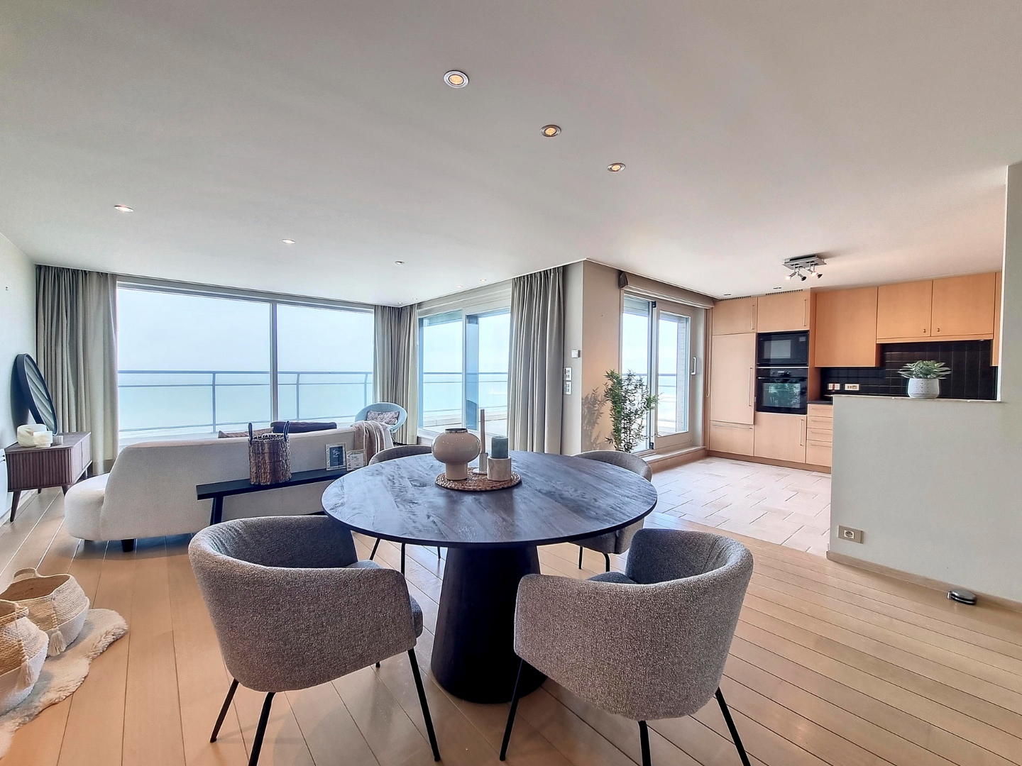 Deze penthouse werd luxueus ingericht en beschikt over veel lichtinval dankzij de grote raampartijen, u geniet van een panoramisch uitzicht op het strand en de zee.