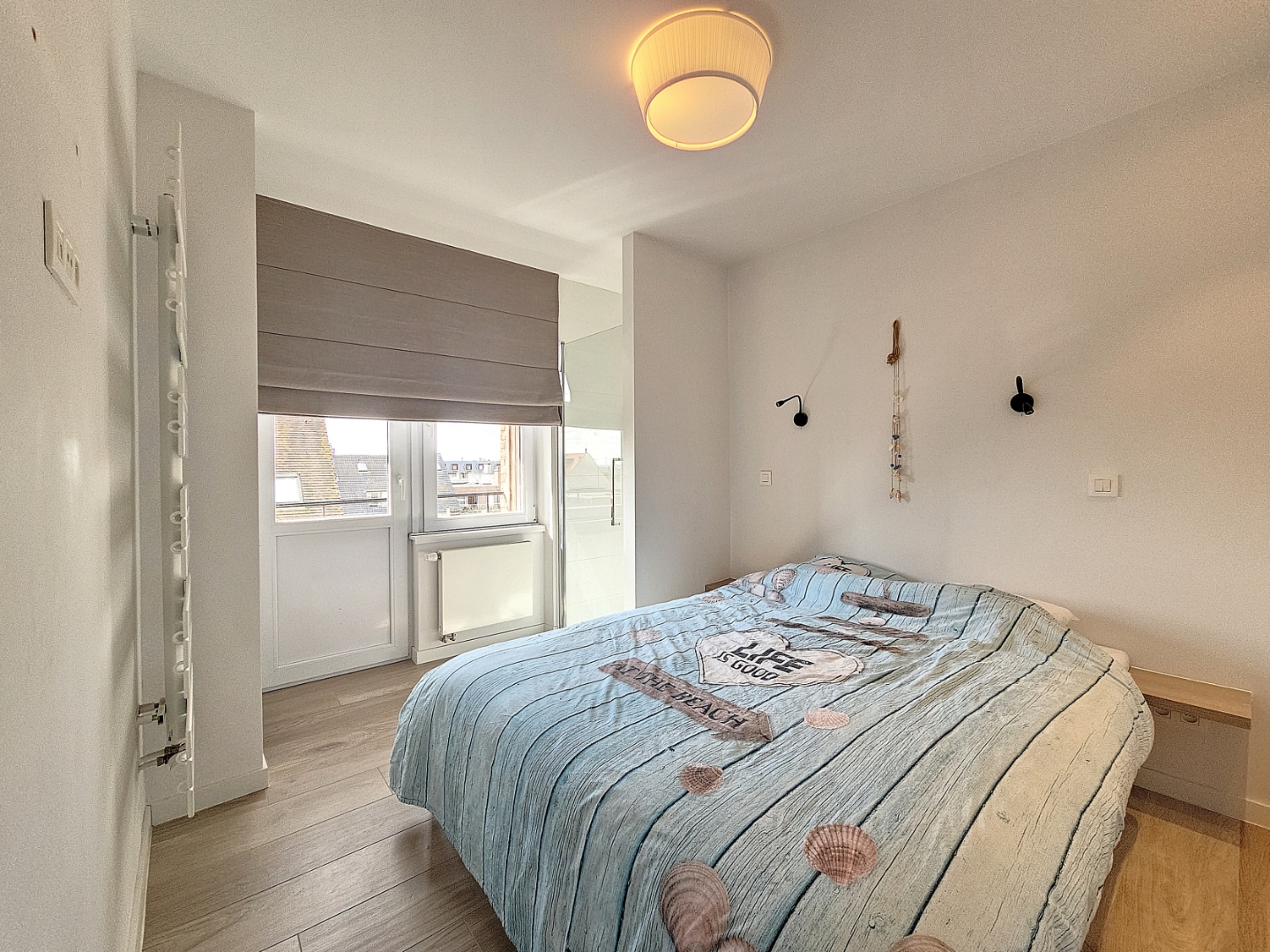 Het appartement beschikt over drie volwaardige slaapkamers, een afzonderlijk gastentoilet en twee badkamers waarvan één met ligbad, handdoekdroger en dubbele lavabo, en een tweede met douche en lavabo.