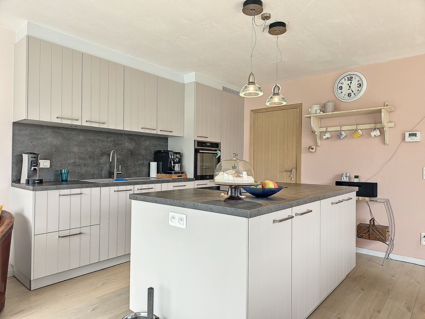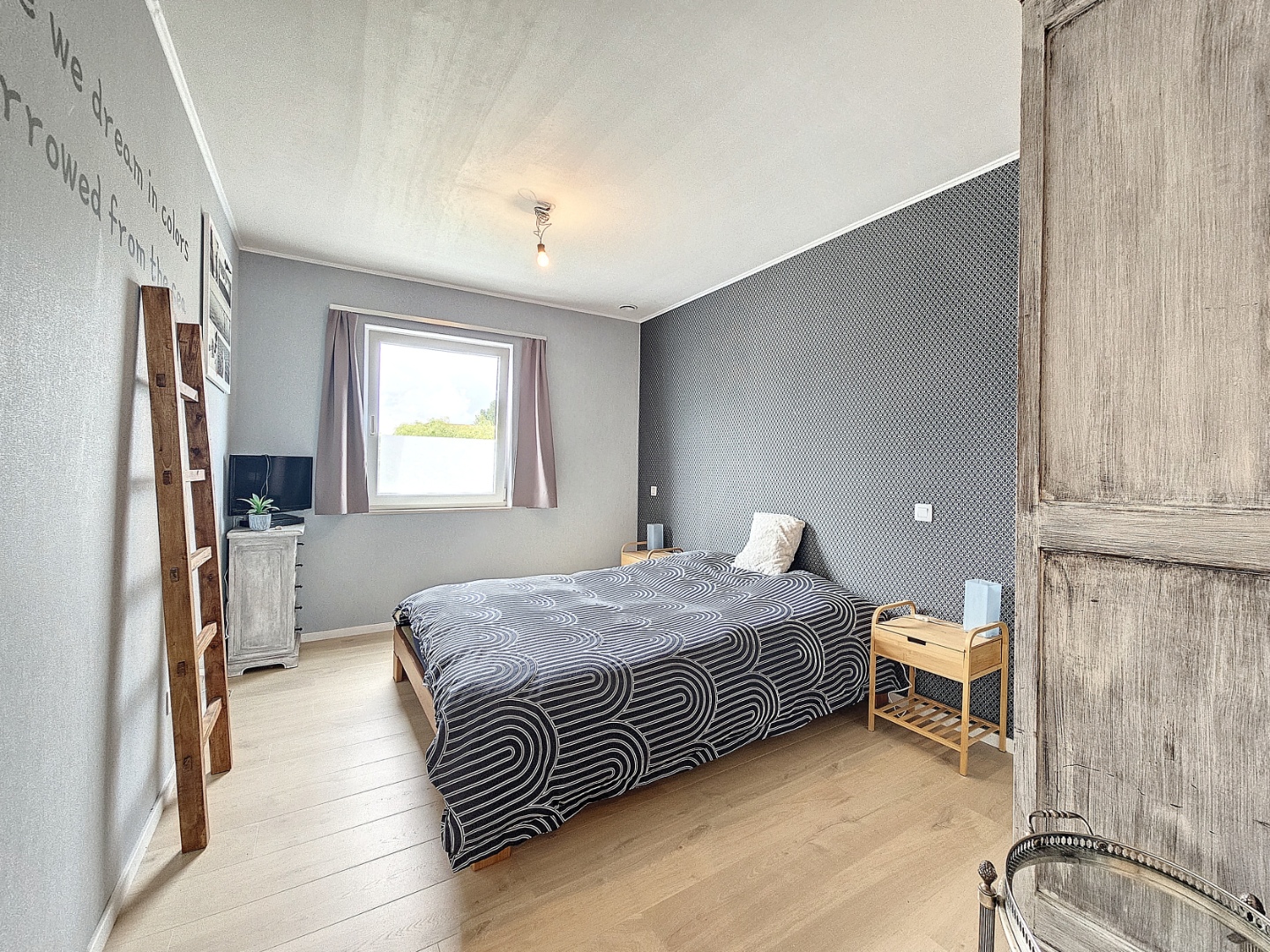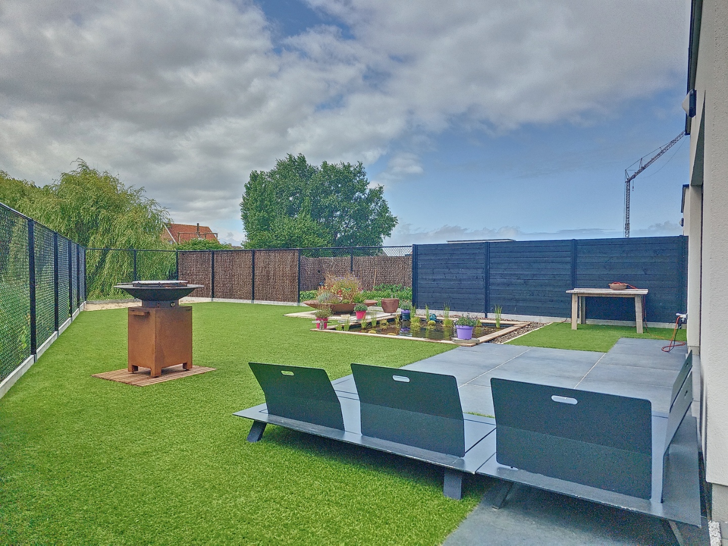 Indeling: inkomhal, berging, gastentoilet, lichtrijke woonkamer met een open en volledig geïnstalleerde keuken, aangelegd terras en een ruime zonovergoten omheinde tuin met vijver, wasplaats en een carport die toegang verleent tot de tuin. 1e verdieping: 3 slaapkamers, 1 badkamer met ligbad, douche en enkele lavabo, apart toilet. Deze moderne woning is een BEN-woning, voorzien van vloerverwarming, warmtepomp, zonnepanelen (12), thuisbatterij, regenwaterput (5.000L), ventilatiesysteem D.